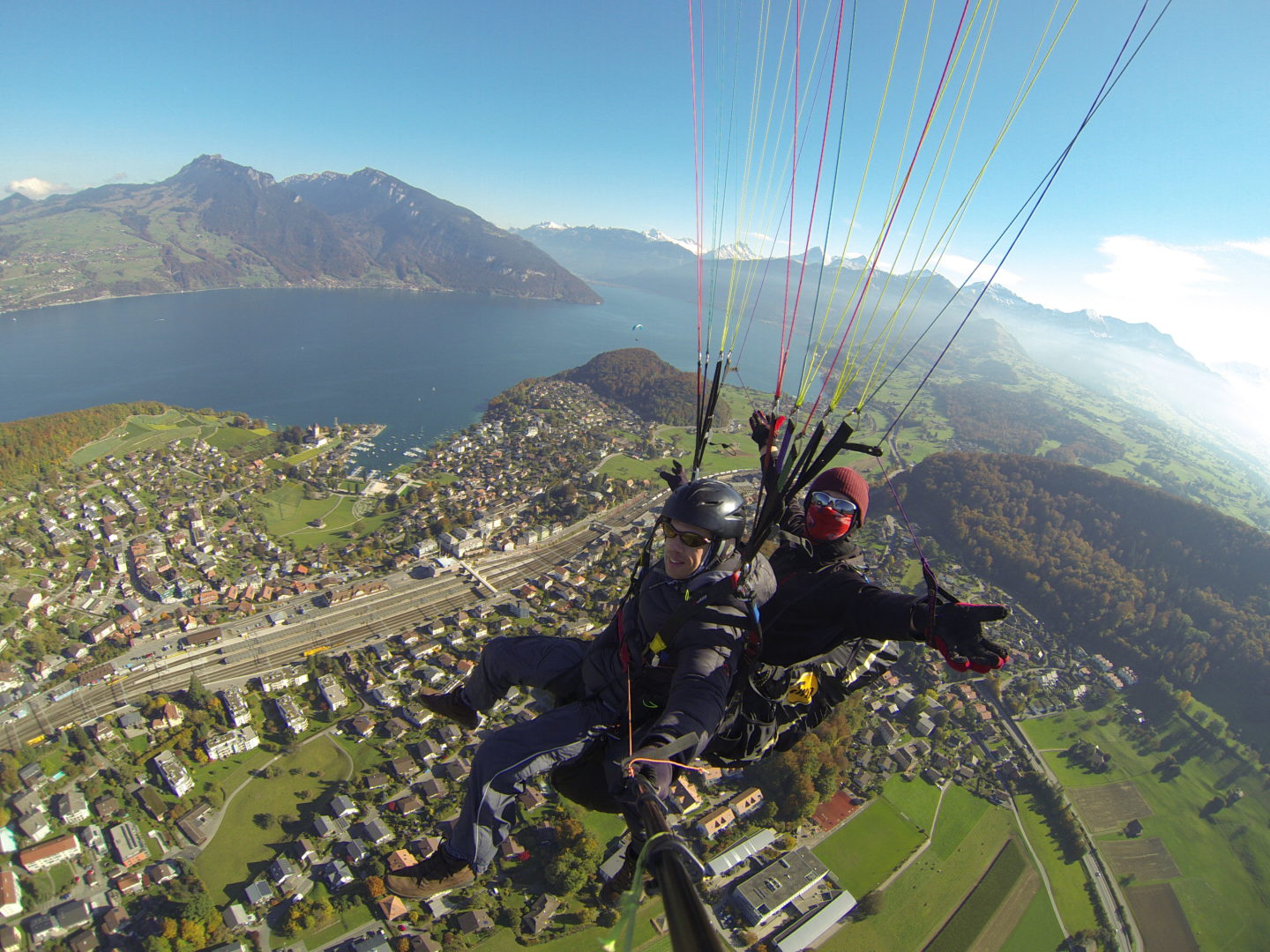als es uns zu kalt wurde flogen wir vom Niesen weg in Richtung Spiez