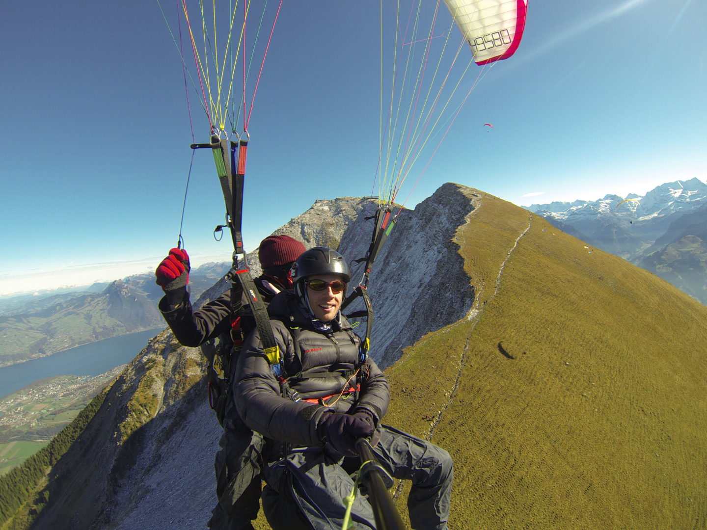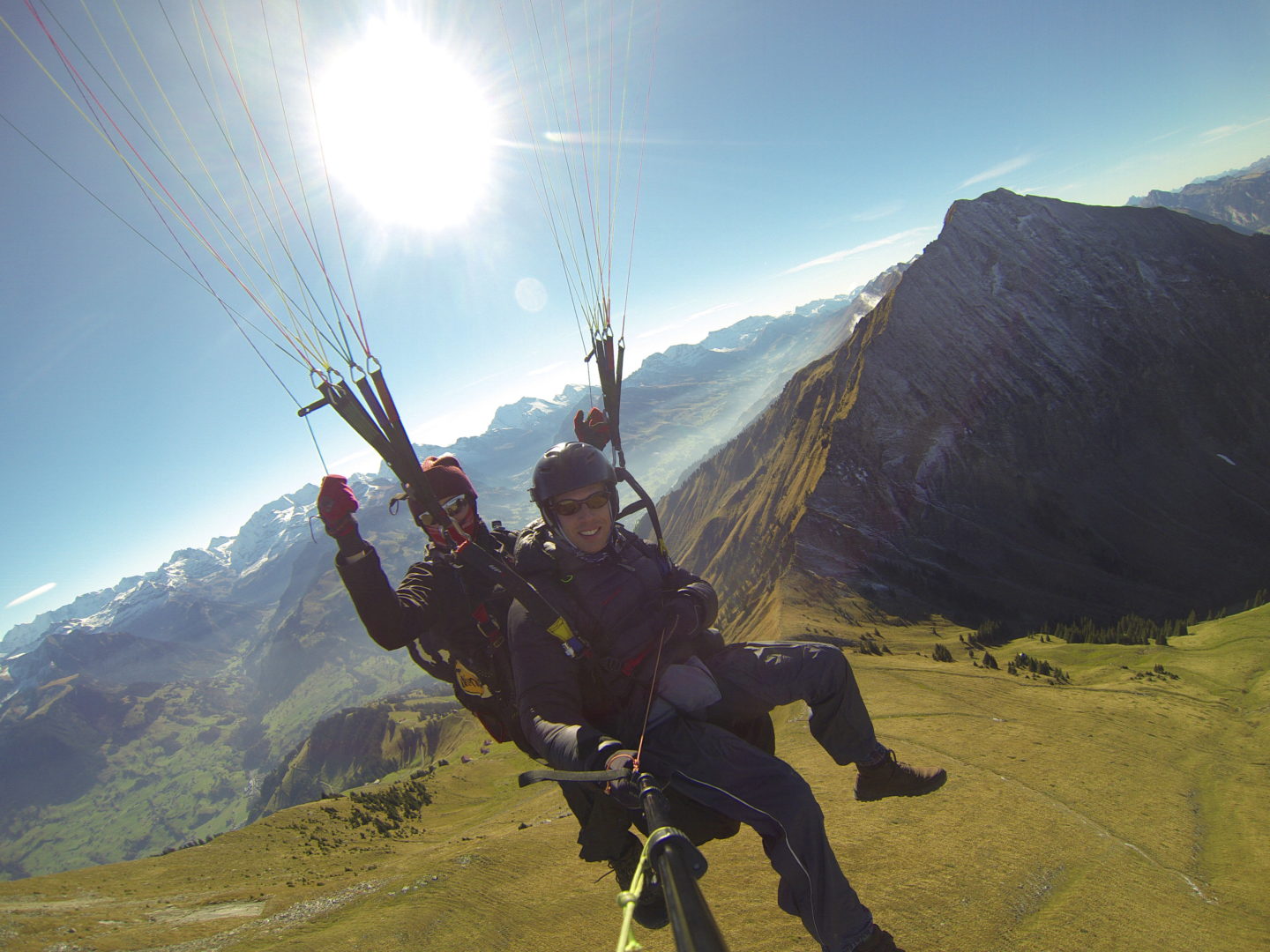 Vor dem schlechten Wetter im Jura flüchteten wir heute ins Engelbergertal bei Luzern. Bei den Tandem-Schnupperflügen konnten unsere Passagiere das Gefühl des Fliegens kennenlernen und den Gleitschirm sogar selbst steuern. Es hat allen sichtlich Spass gemacht!