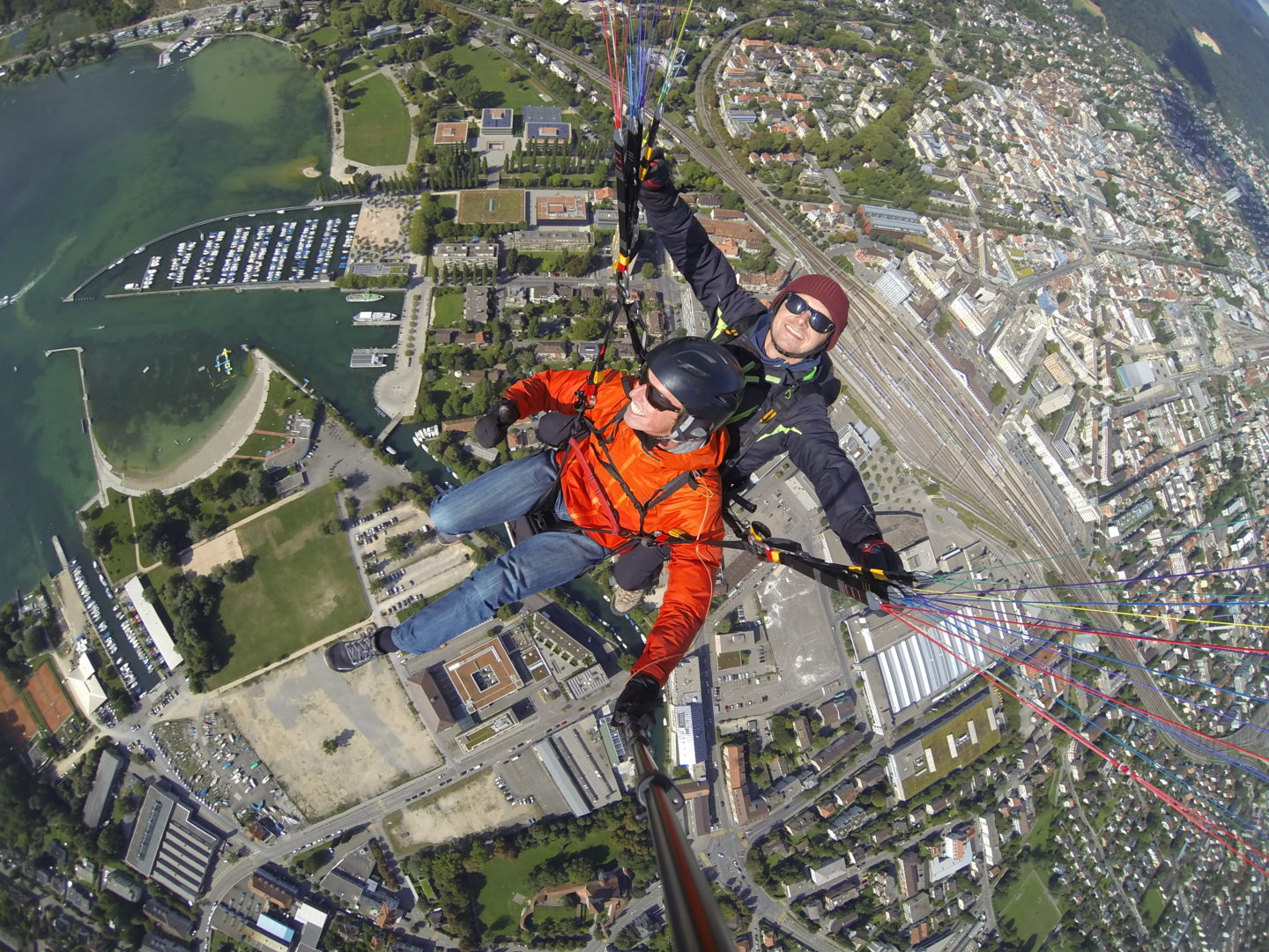 der Passagier durfte den Tandemschirm auch mal selbst steuern.