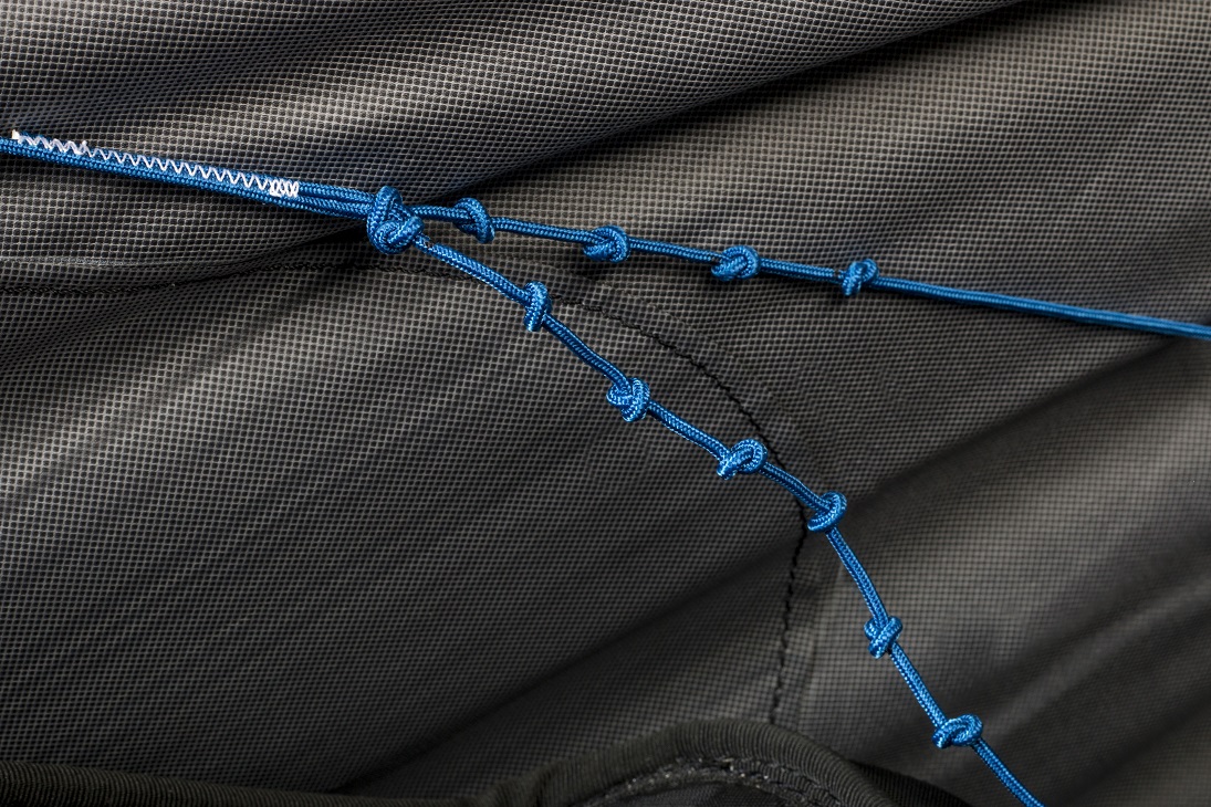 Der Schirm lässt sich einfach in den Rucksack packen, egal, ob er noch mit den Karabinern verbunden ist oder nicht.